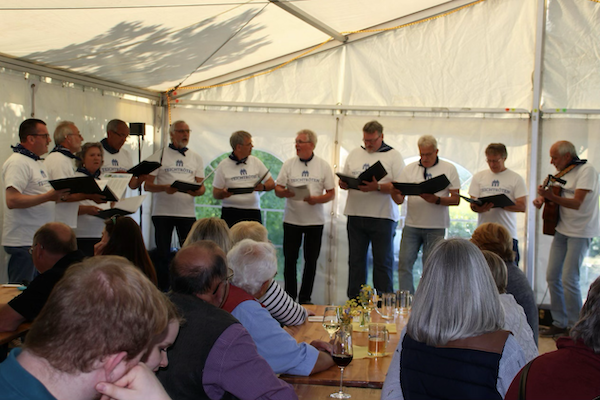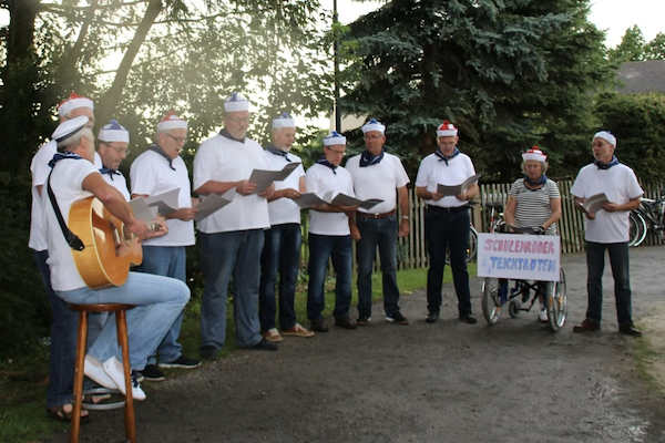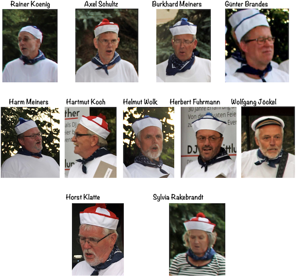 Eigentlich sollte  nur für dieses Fest ein Shanty-Spaß-Chor ins Leben gerufen werden, doch es hat allen 11 Mitstreitern so viel Spaß gemacht, dass aus dieser Idee eine lustige Truppe geworden ist die sich monatlich zum Üben trifft. Hier wird dann meist bis irgendein "halb" Uhr gesungen und gelacht.
